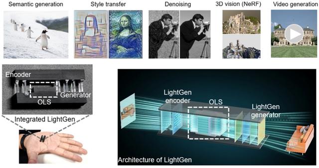 更重要的是,LightGen芯片展现的并不是“电辅助光”做生成,而是让全光芯片完整实现“输入—理解—语义操控—生成”的闭环:输入图像进入芯片后,系统能够提取与表征语义信息,并在语义操控下生成全新的媒体数据,实现让光“理解”和“认知”语义。