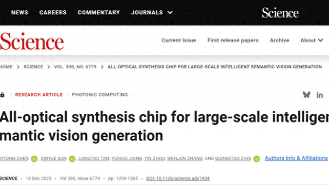 相关研究以《大规模智能语义视觉生成全光芯片》(All-opticalsynthesischipforlarge-scaleintelligentsemanticvisiongeneration)发表于国际顶级学术期刊《科学》(Science)上。