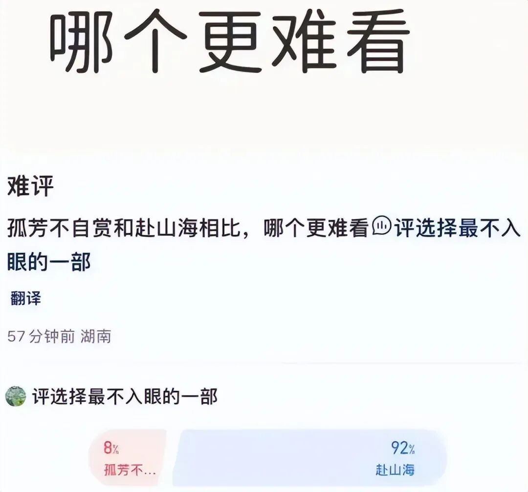 甚至有网友把《赴山海》和七年前的《孤芳不自赏》拿出来对比的,《孤芳不自赏》竟然还赢了,这是“岁月史书”,还是《赴山海》真的这么差?